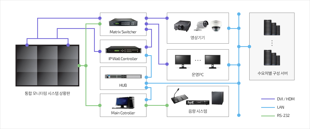 Matrix Switcher 또는 IP Wall Controller를 적용하여 통합 제어 시스템 구축