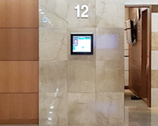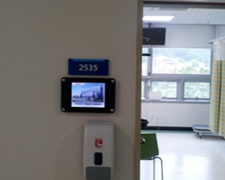 각 병동의 병실입구 벽면에 디지털 디스플레이 장비를 설치하여 입원환자의 병실위치, 주치의, 담당간호사 및 입실환자에 대한 전반적인 현황을 파악할 수 있는 정보를 제공하는 솔루션입니다.